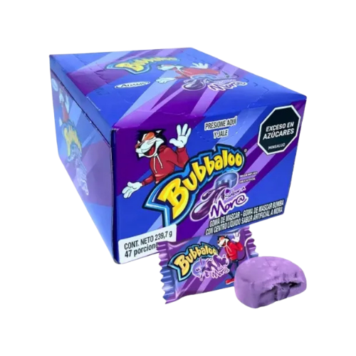 El Bubbaloo Mora es un chicle con centro líquido de sabor a mora, ideal para quienes buscan un toque ácido y dulce a la vez. Su textura suave y explosión de sabor lo hacen irresistible.