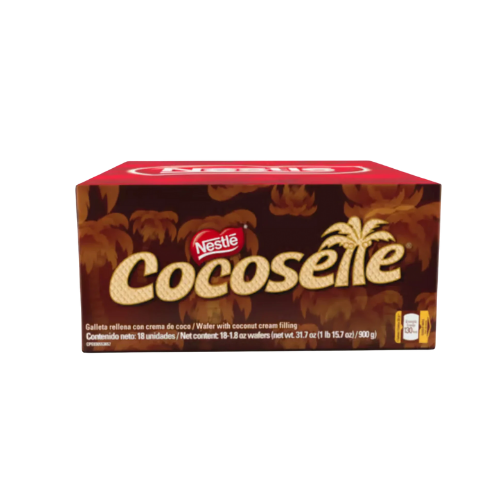 Cocosette es una galleta crujiente rellena de crema de coco y cubierta de chocolate. Esta caja contiene varias unidades de este clásico venezolano, perfecto para compartir o disfrutar individualmente.