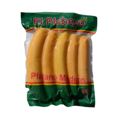 Plátano maduro en trozos, congelado para conservar su dulzura y frescura. Ideal para freír o cocinar al horno.